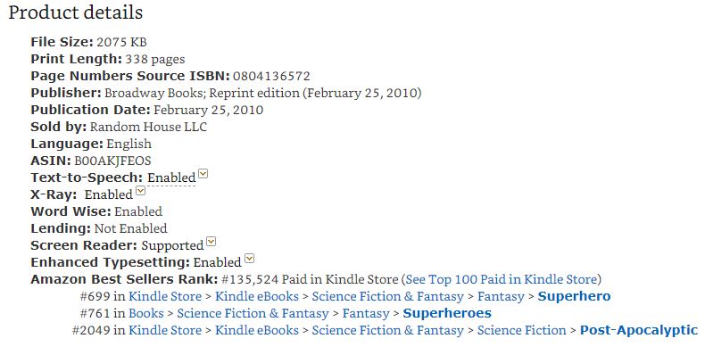 All of this just proves that while superhero books are hot and can make BIG money for those at the top of the charts, they can also make a handy sum for authors who don't quite make it as far up the charts.