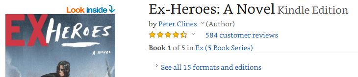"Ex-Heroes" by Peter Clines has so far received 584 customer reviews, so from that, we can literally deduce that it has sold approximately 58,400 copies.